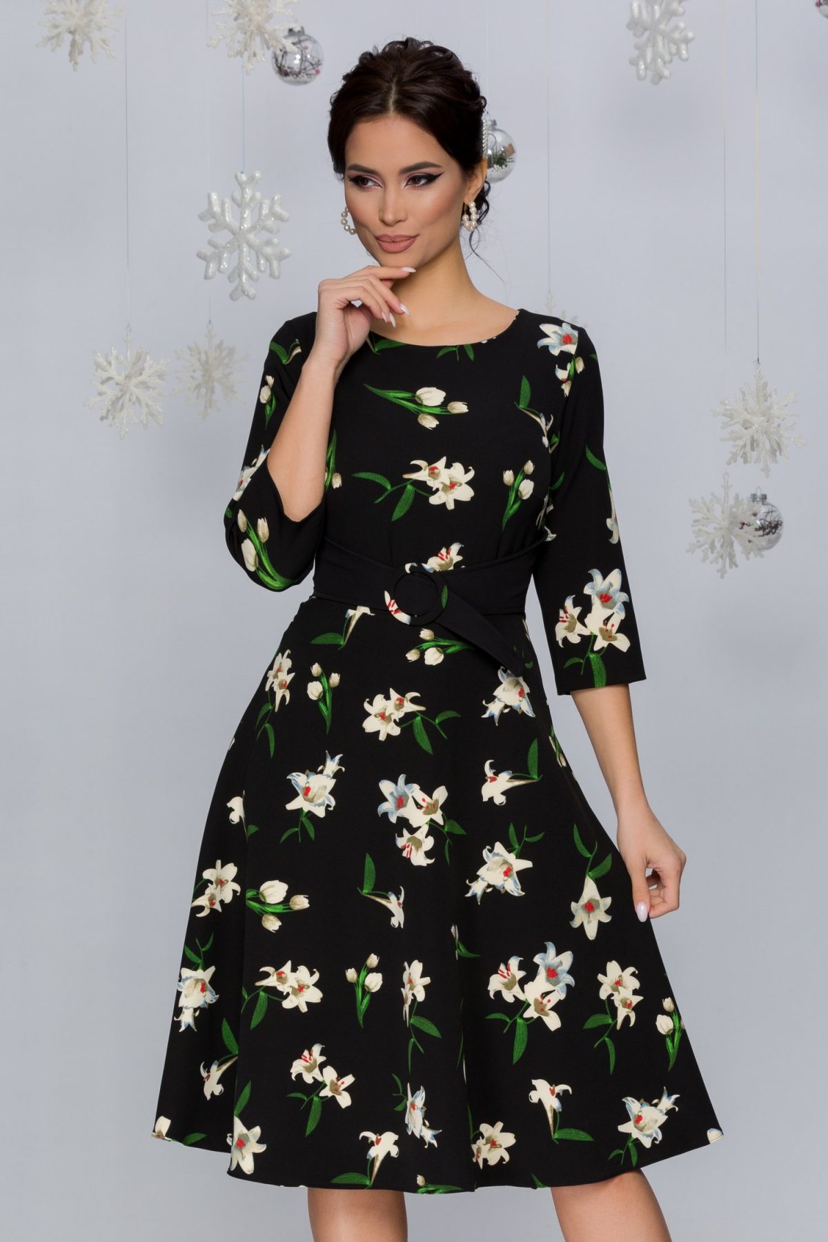 Rochie Jasmine neagra cu imprimeu floral ivoire. Pret: 239.99 lei. Se poate cumpara de aici: