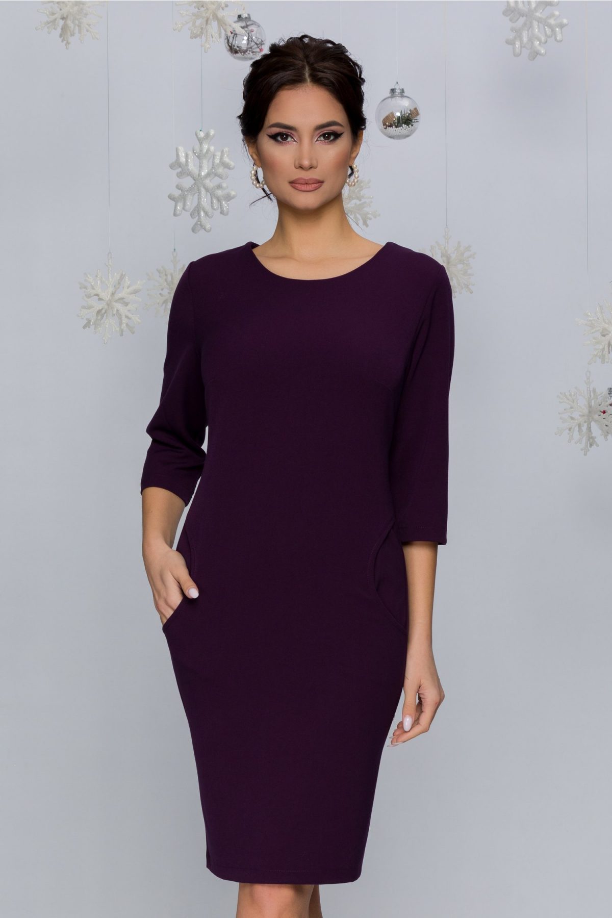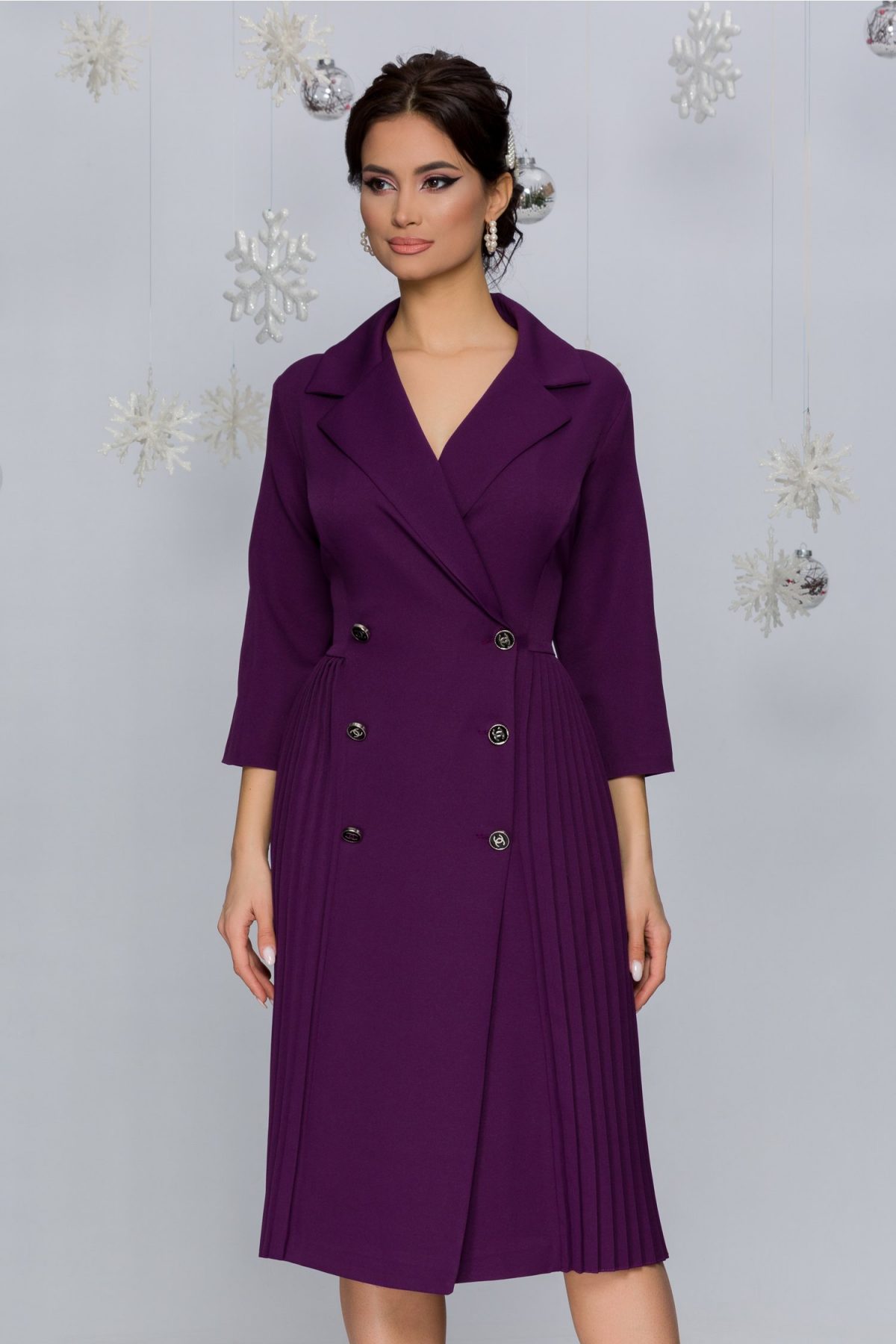 Rochie Celine mov tip sacou cu pliuri. Pret: 199.99. Se poate cumpara de aici: